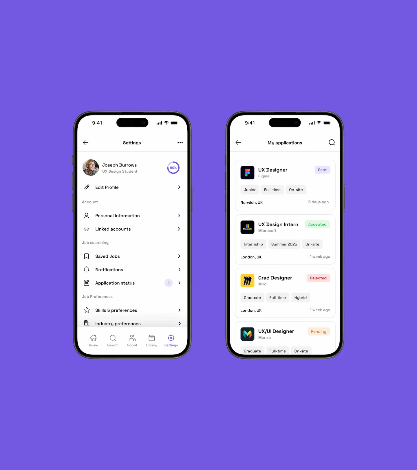 The research process involved analysing youth unemployment trends, conducting interviews with four students, and gathering insights from three career professionals. I also carried out competitor analysis, which revealed issues with filtering, salary transparency, and a lack of student-focused features. Additionally, I created user personas and a Value Proposition Canvas to refine key features and ensure the app aligned with user needs and goals.